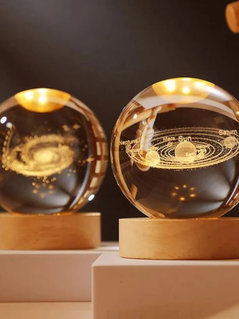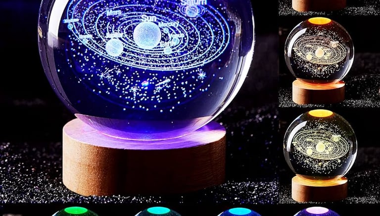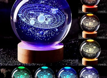 Conalisk 3D Solar System Crystal Ball Lamp,3.15 Inch K9 Night Light With Wooden Base,16 Colors Changing Remote Control,3D Planet Laser Engraving Holographic (Solar Systemled)